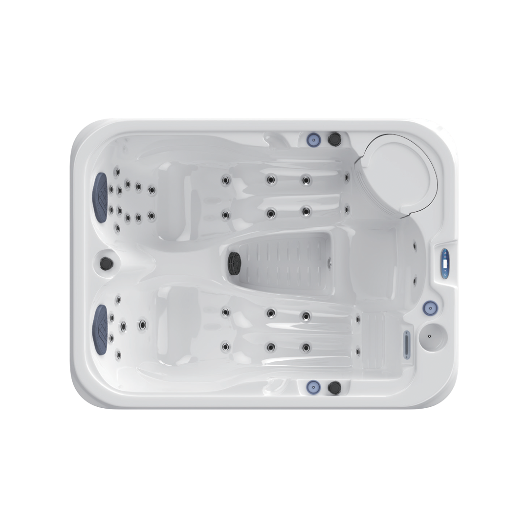 Capacité d’accueil optimale : ce jacuzzi est conçu pour accueillir confortablement trois adultes, avec une configuration intelligente comprenant deux places allongées (lounger) et un siège. Cela permet une détente individuelle ou des moments de convivialité en petit comité.
