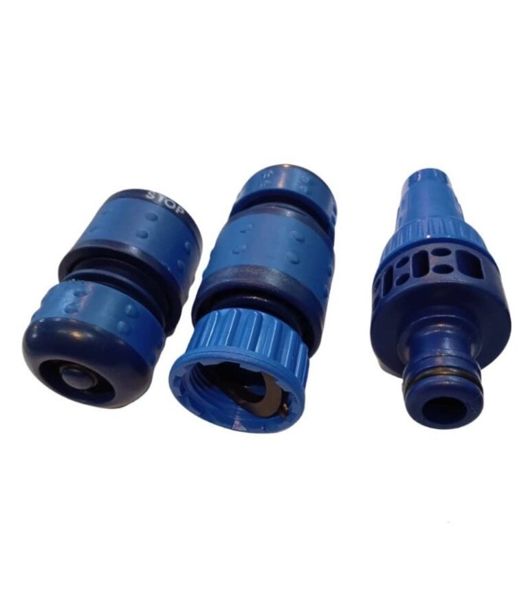 - 1 raccord rapide avec Acqua Stop Ø 1/2″ (12,5 mm) / 5/8″ (16 mm) — interrompt automatiquement le flux d’eau lors de la déconnexion de la lance, sans éclaboussures et sans fermer le robinet