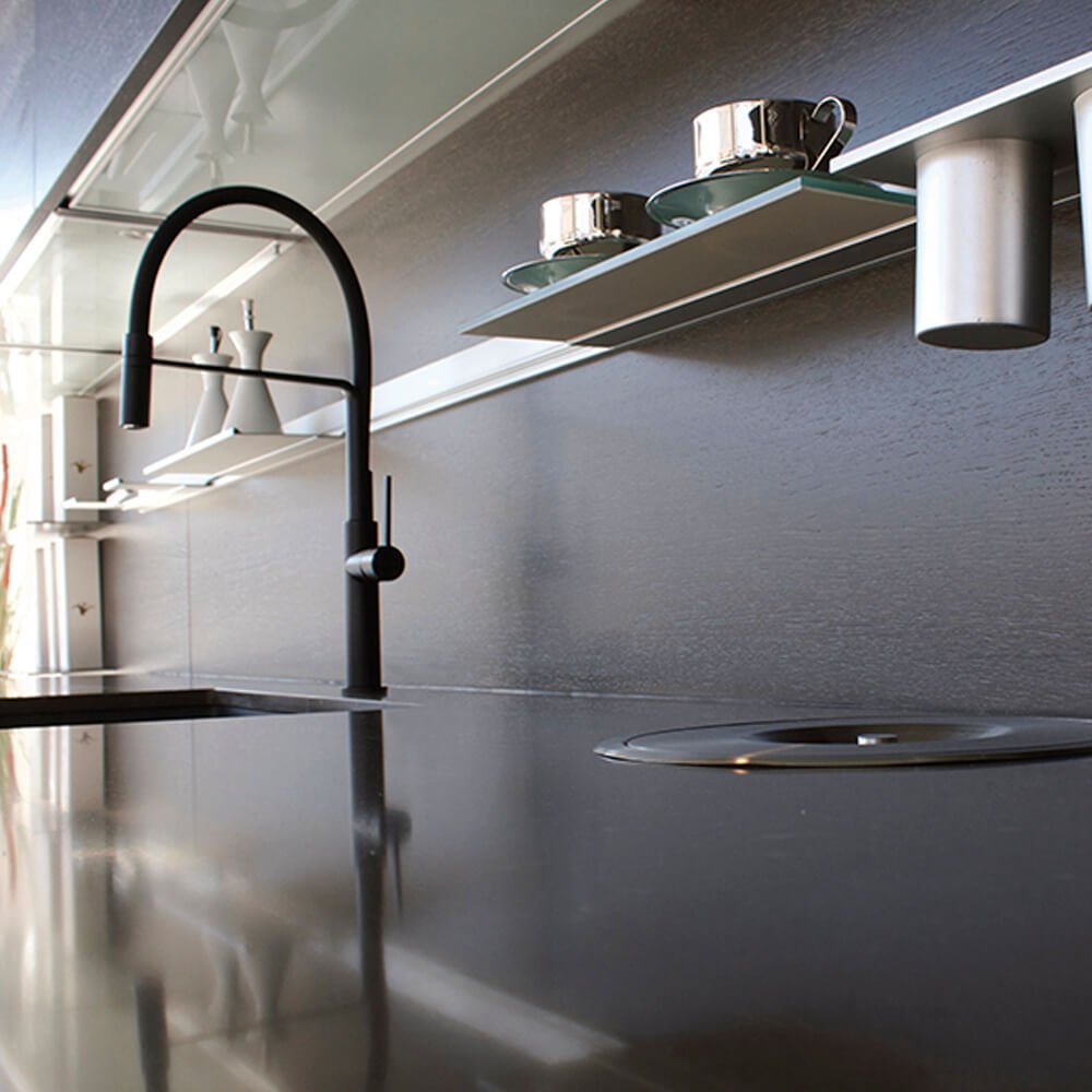 À faire : nettoyer avec de l’eau savonneuse et un chiffon microfibre doux. Sécher après usage pour éviter les dépôts de calcaire blancs qui ressortiraient sur le noir.