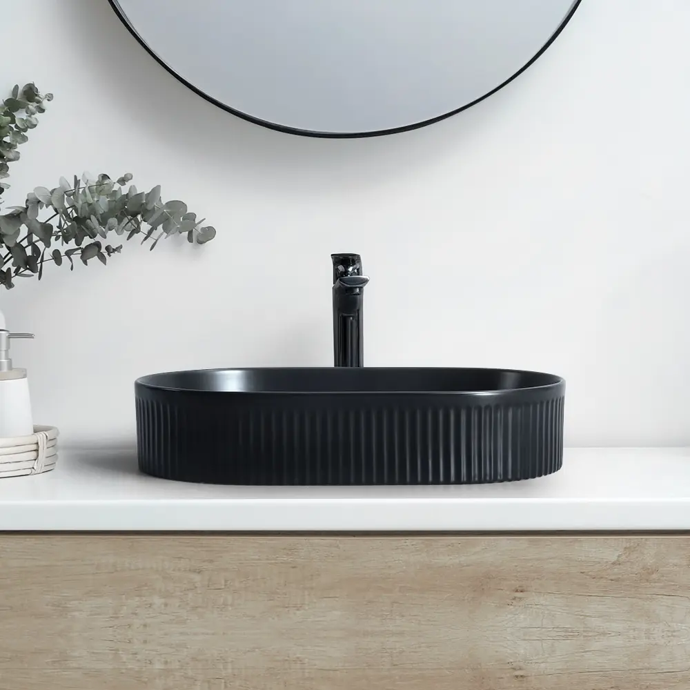 La vasque à poser recant bardage noir de la marque Elegance incarne la sophistication moderne et l’originalité esthétique, idéale pour sublimer toute salle de bain Marrakech. Avec son design ovale raffiné et son bardage texturé, elle attire immédiatement le regard et transforme votre espace en un lieu digne des plus beaux magazines de décoration.